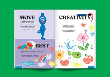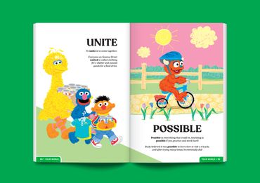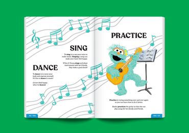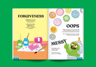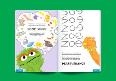 This vocab book teaches words encouraging emotional intelligence and growth—including definitions, sentence samples, and your favorite Sesame Street characters—geared towards audiences of all ages.