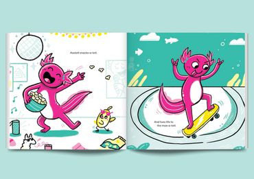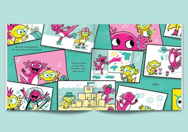 This 4-color, axo-lutely hilarious read-aloud connects siblings and friends who need to chill their gills and learn to get along.