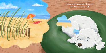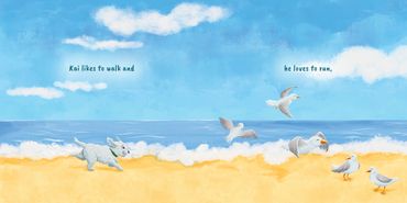 This book tells the joyful tale of Kai's playful day at the beach, which takes a stormy turn.