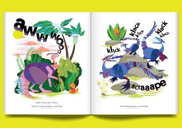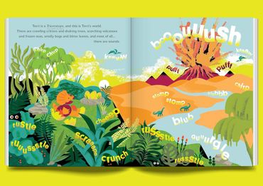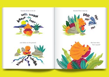 This romping, rhyming, onomatopoeic tale follows Terri the Triceratops through the world of dinosaurs in a digital style replicating classic screen-printing.